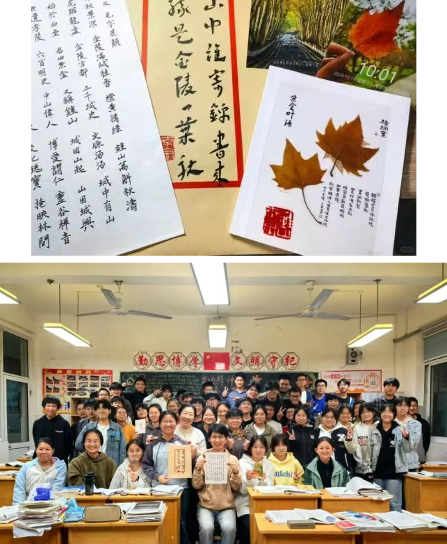 后来我们收到无数反馈:有人把信件挂在书桌前、有人把钟山的秋叶夹进手账、有人把它带去了课堂、还有人带着它去了当地的公园,和我们分享他们当地的秋……The responses were heartwarming. Some pinned the letters above their desks; others tucked the leaves into journals. Some brought them into classrooms, while others carried them to local parks — sharing the colors of their own autumn with us.