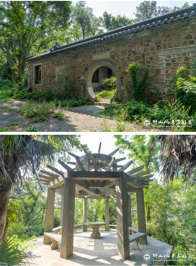 To the east of Yongmu House stands the Yizheng Pavilion, where Sun Fo once discussed state affairs and handled official duties during his mourning period. During the Chinese People’s War of Resistance Against Japanese Aggression, both Yongmu House and Yizheng Pavilion were destroyed, leaving only fragments such as damaged walls, a stone plaque, and the octagonal foundation of the pavilion.